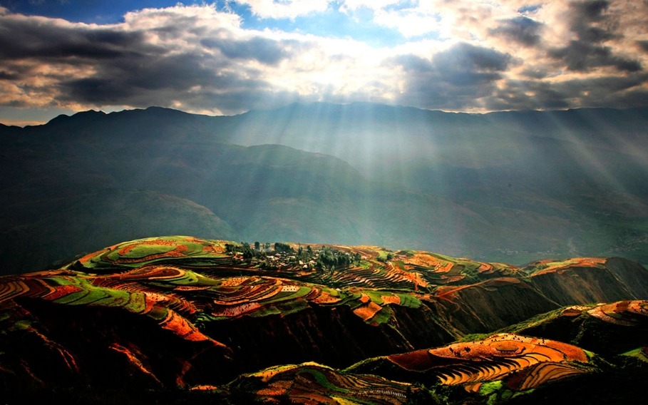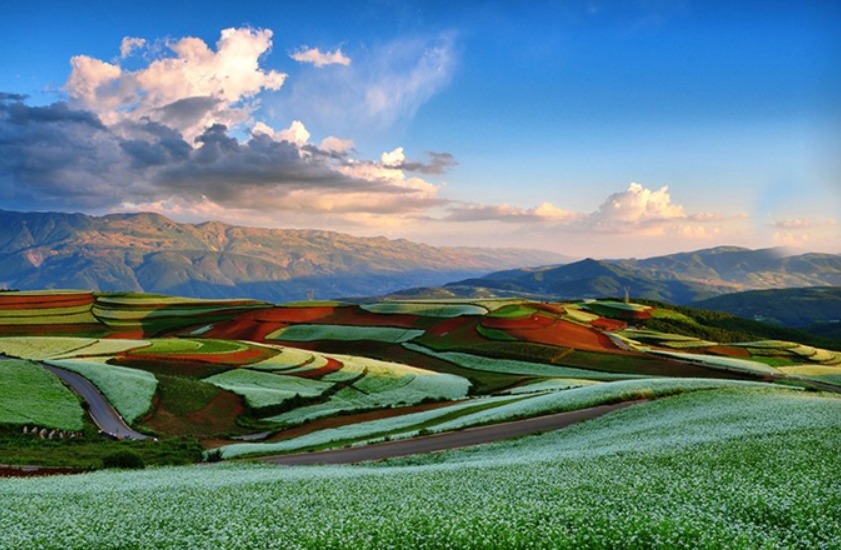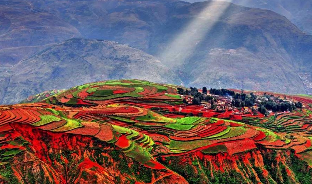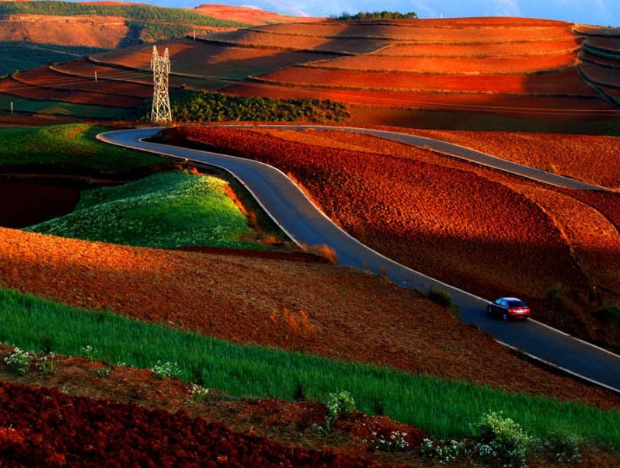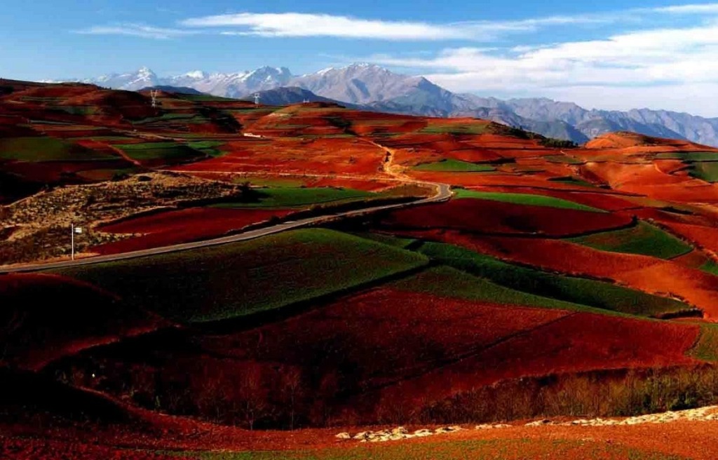 곤명 홍토지는 곤명에서 약 250 KM 떨어진 동천현에 자리 잡고 있는데