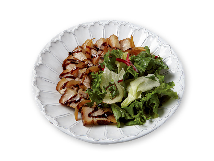 5. 그릇에 담고 발사믹크림을 뿌린 뒤 샐러드채소를 곁들여 마무리.