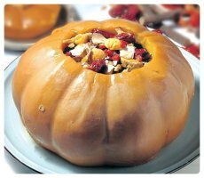 2. 호박 속에 꿀과 씨를 뺀 대추를 넣고 꼭지를 다시 막아 찜 솥에 앉힌다.