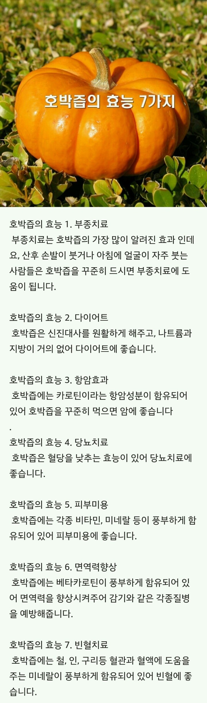 호박즙의 효능 한방에서는 옛부터 부기가 있을 때 사용해 왔는데,