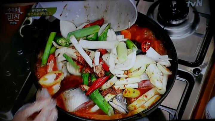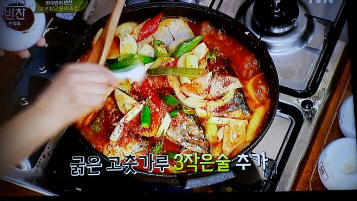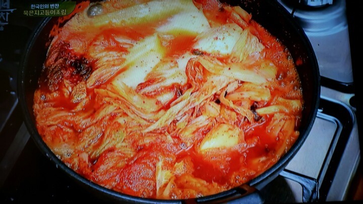 묵은지가 완전히 익었을때 고등어 올리고 양념장은