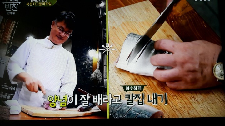 손질한 고등어는 꼬리를 잘라내고 2등분한다.