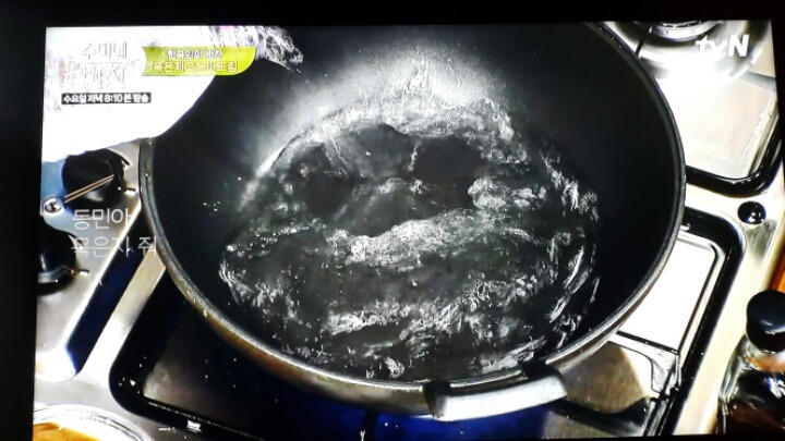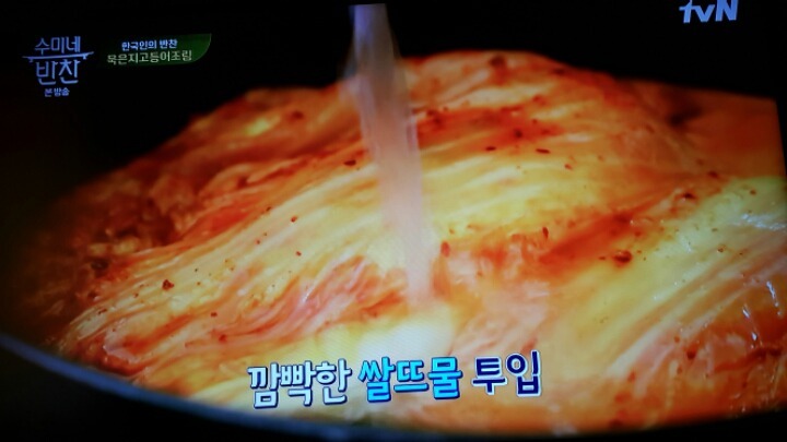 쌀뜨물을 김치가 잠길만큼 자작하게 넣고 센불로 끓인다.