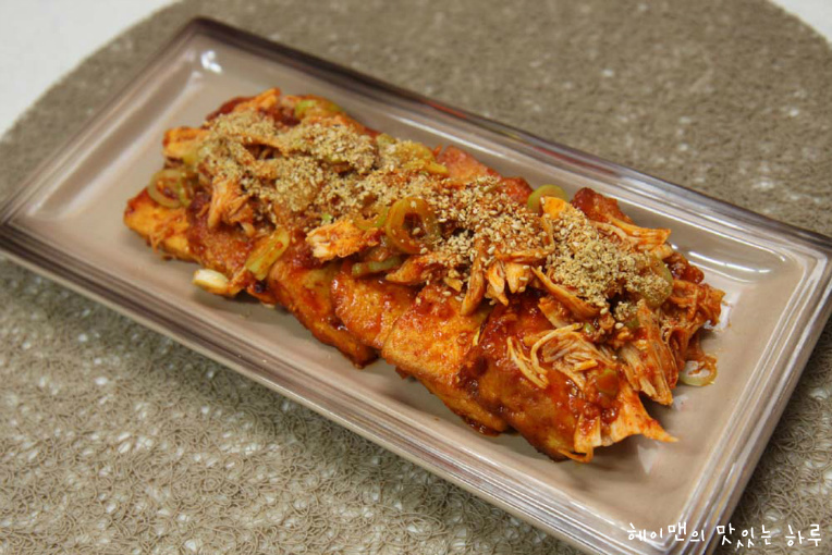 오늘은 고추장 양념소스에 닭가슴살을 듬뿍 올린 두부조림을 가지고 왔어요~ ^^