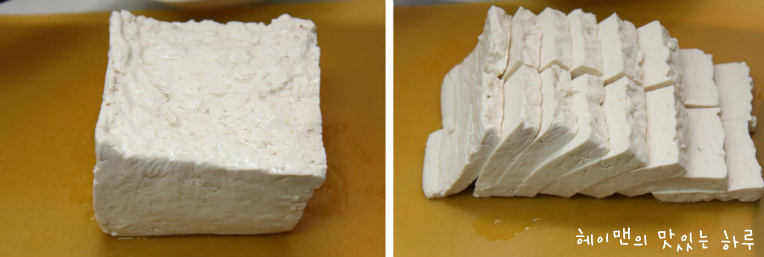 두부가 마트두부가 아니라 재래시장에서 산 두부라 크기가 좀 큽니다.