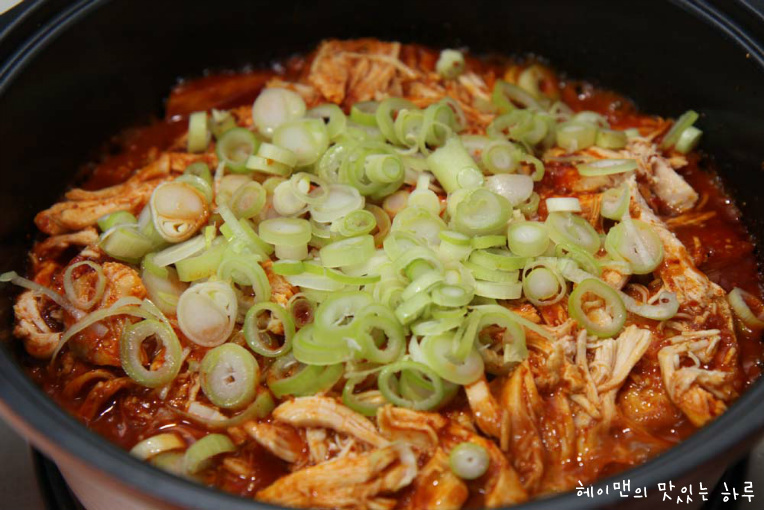 9. 마지막으로 송송 썬 대파를 올려주고 끓여주면 완성입니다.