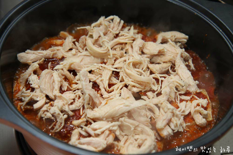 이렇게 닭가슴살 올려서 두부조림 만들어 놓으면 평소보다 반찬을 두배로 먹어도