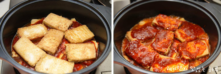 6. 다시 그위에 두부를 올리고 양념장을 올려주세요~