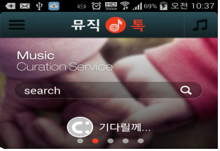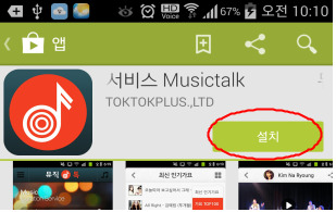5. 스마트폰에 앱이 설치되었으며, 뮤직톡의 프로그램의 화면을 볼 수 있다.
