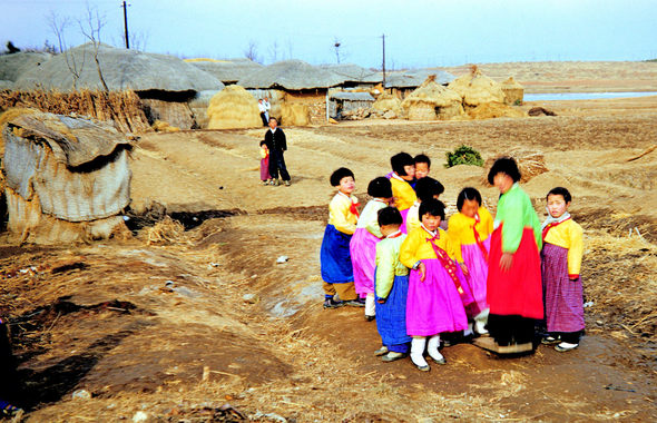? 신나는 널뛰기 색동옷을 차려입고 설날 널뛰기를 하는 아이들. 1953년 설날. 김포 통진.