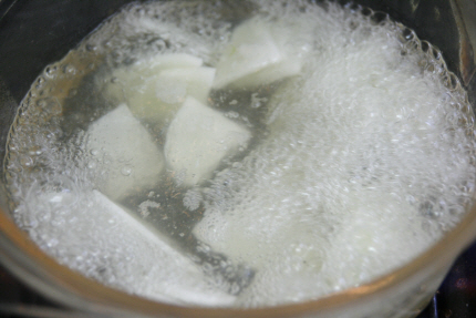 무를 넣은 다음 한번 끓여 줍니다.