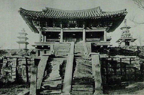 복원하기 전 청운교 백운교의 돌계단이 어스러진 상태.