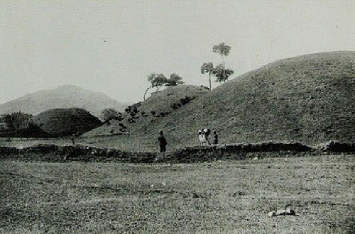 서봉총 발굴 현장을 찾은 스웨덴 황태자 쿠스타프(왼쪽에 안경 쓰고 무릎 꿇은