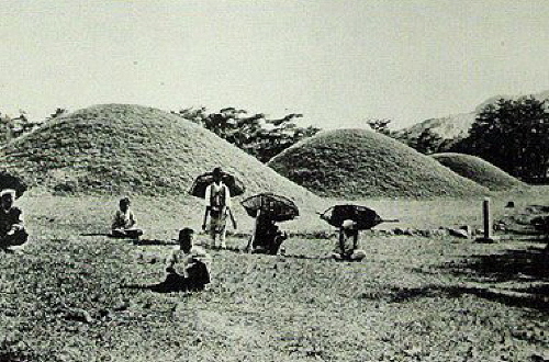 아이들이 지게 지고 나무하러 가다가 삼릉에서 놀고 있는 모습