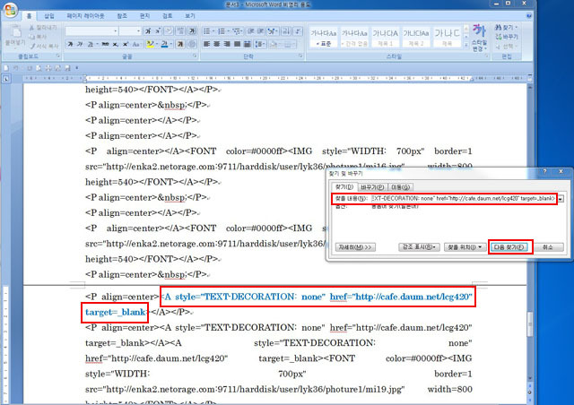 다음 찾기를 클릭하시면 링크를 건 주소가 흙색으로 표시 됩니다.