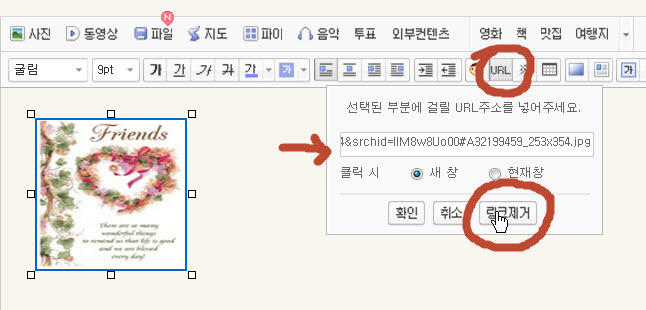 '링크'제거 항목을 '마우스'로 '크릭'하여주시면;