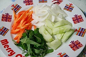 야채와 골뱅이는 찬물로 씻어 먹기 좋은 크기로 잘라두세요.