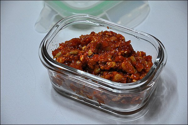 쌈장보다 견과류의 조금 더 많은 상태예요.