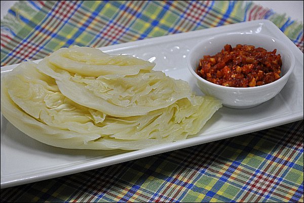 잘 쪄진 양배추도 이렇게 담아주고,