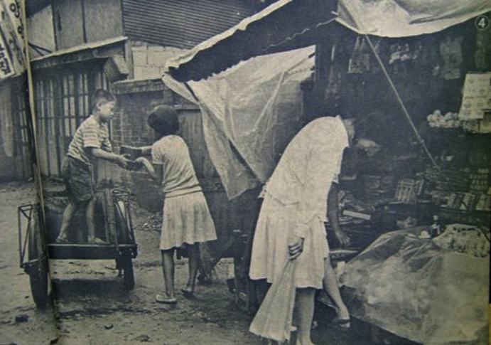 ▲ 피로회복제(박카스 또는 구론산)를 팔고 있는 소년