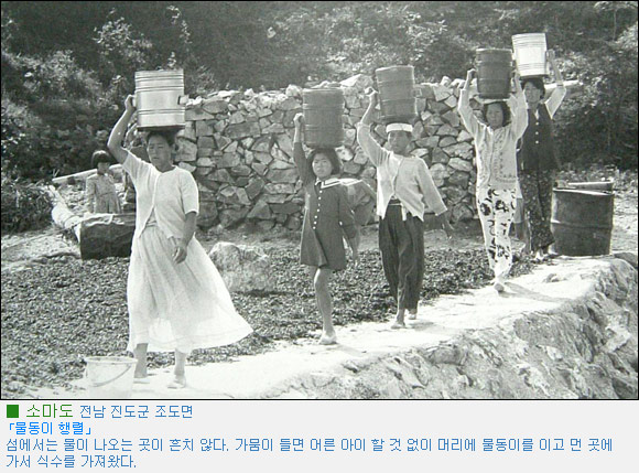 △ 우리의 어머님들은 물동이 머리에 이고 다니는 시절,