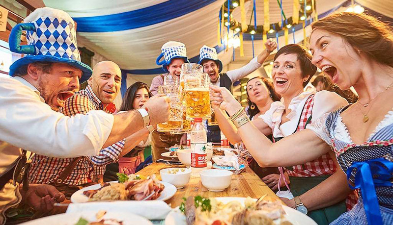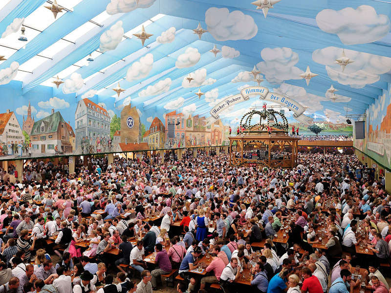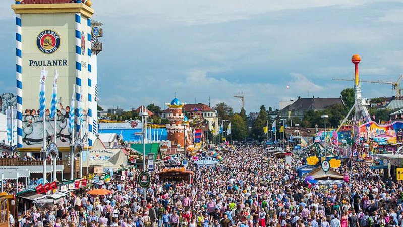 | 옥토버페스트(Oktoberfest)는 독일 바이에른주 뮌헨에서 9월 말부터 10월 초까지 2주 동안 열리는 축제이다. 1810년부터 뮌헨 서부의 테레지엔비제에서 열리며, 세계 최대 규모의 민속축제이다. 이 축제를 위해 뮌헨의 양조사들은 특별히 알코올 도수가 높은 맥주를 만들어 내놓는다. 관광객 500만 명 이상이 방문하며, 소시지 20만 개 이상, 맥주 500만 리터 이상 소비되는 거대한 축제다. |