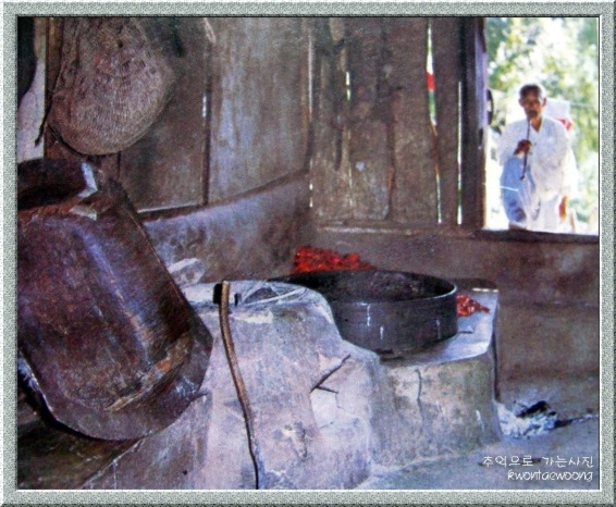 재래식 부억= 왼쪽은 고목나무로 만든 쌀통