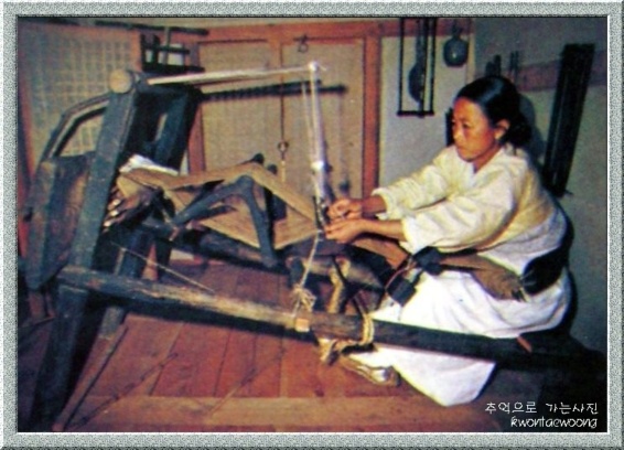 베틀에 매달려 고생하시던 우리네 어머님의 모습입니다.