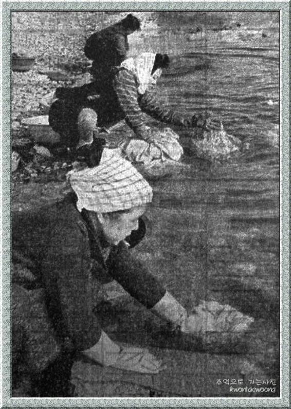 한겨울 얼음을 깨고 시린 손으로 빨래하시던 어머님들 이십니다.