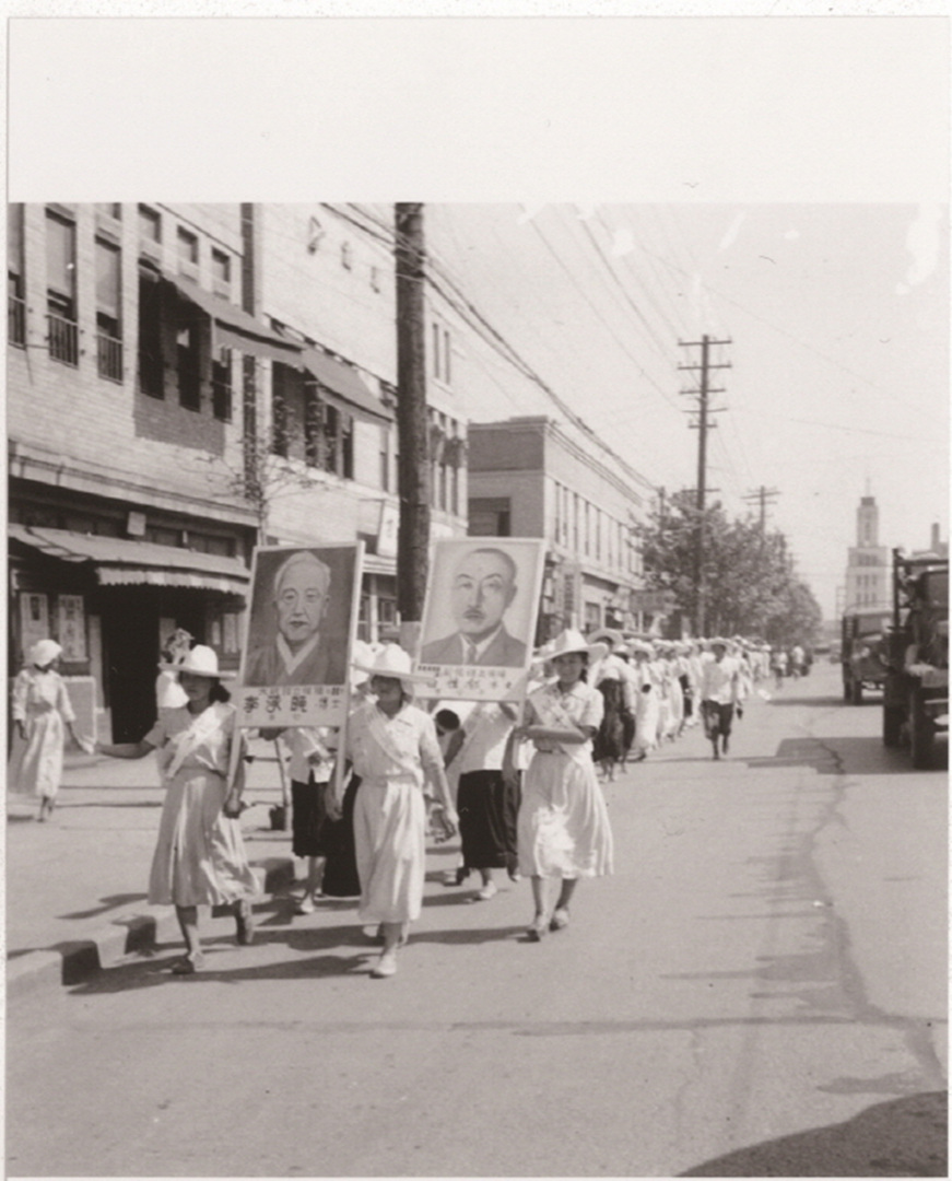 제3·4대 정·부통령선거 논산역에 모인 이승만 대통령 지지자들 모습 .