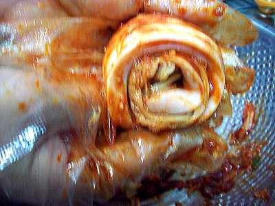김치위에도 양념장을 약간 발라줍니다.